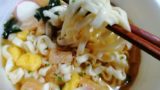 きざみ揚げうどんとの違いは、熱湯投入後に待つ時間が3分であることです。